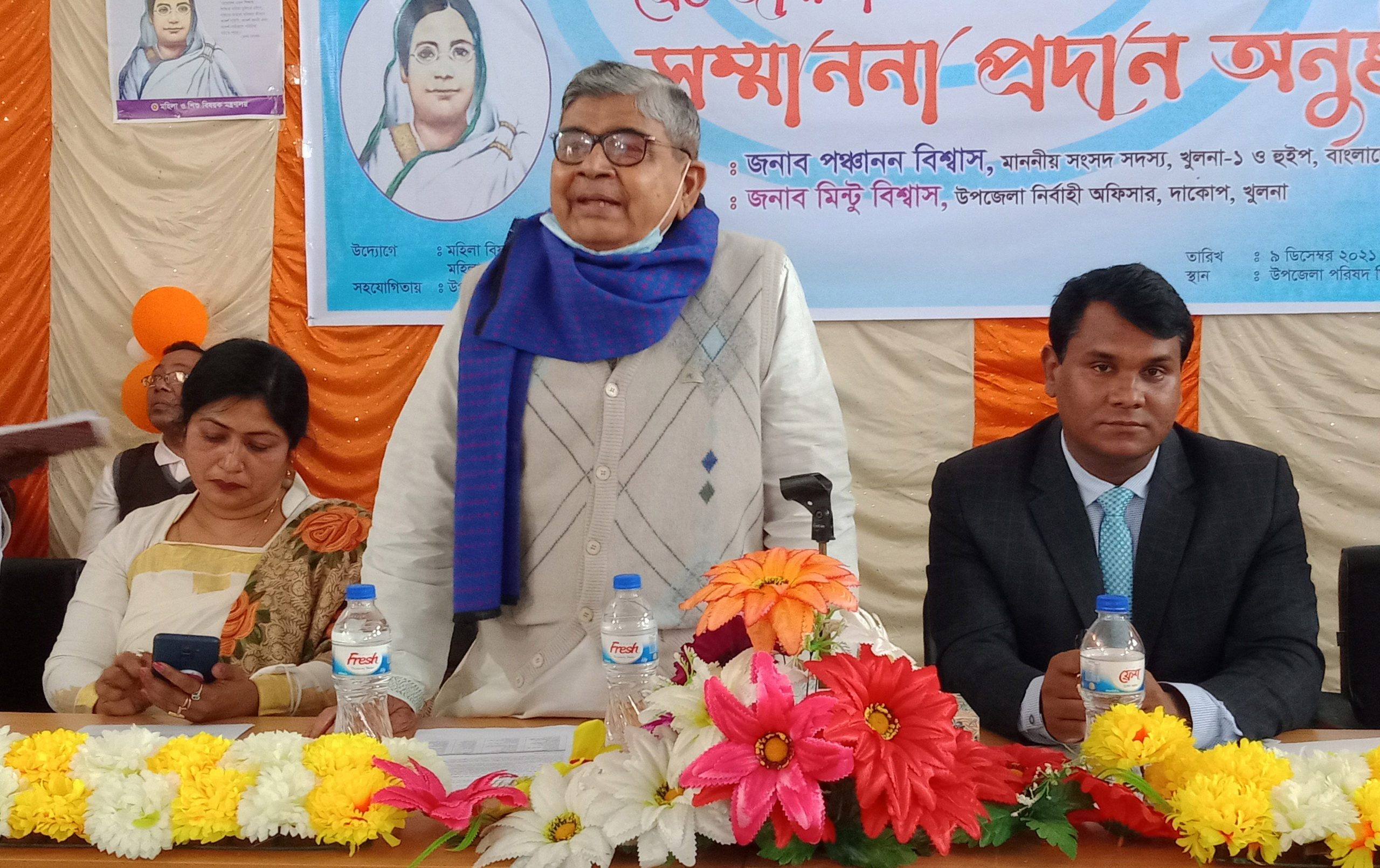 “শেখ হাসিনার বারতা, নারী পুরুষ সমতা” এই প্রতিপাদ্যকে সামনে রেখে দাকোপে আস্তর্জাতিক নারী নির্যাতন প্রতিরোধ পক্ষ ও বেগম রোকেয়া দিবস উপলক্ষ্যে উপজেলা প্রশাসনের আয়োজনে শ্রেষ্ট জয়িতা সম্মাননা প্রদানের আলোচনা সভায় প্রধান অতিথির বক্তৃতায় হুইপ পঞ্চানন বিশ্বাস এ কথা বলেন। বৃহম্পতিবার বেলা ১১টায় উপজেলা পরিষদ মিলনায়তনে উপজেলা নির্বাহী কর্মকর্ত (ইউএনও) মিন্টু বিশ্বাসের সভাপতিত্বে ও উপজেলা মহিলা বিষয়ক কর্মকর্তা সুরাইয়া সিদ্দিকার সঞ্চালনায় অনুষ্ঠিত আলোচনা সভায় বিশেষ অতিথির বক্তৃতা করেন সংরক্ষিত আসনের সংসদ সদস্য অ্যাডঃ গ্লোরিয়া ঝর্ণা সরকার, উপজেলা পরিষদ চেয়ারম্যান মুনসুর আলী খান, সাবেক উপজেলা চেয়ারম্যান ও উপজেলা আওয়ামীলীগের সভাপতি শেখ আবুল হোসেন, থানা অফিসার ইনচার্জ শেখ সেকেন্দার আলী, চালনা পৌরসভার মেয়র সনত কুমার বিশ্বাস। অন্যান্যের মধ্যে বক্তৃতা করেন ইউপি চেয়ারম্যান বিনয় কৃষ্ণ রায়, শেখ যুবরাজ, পঞ্চানন মন্ডল, সুদেব কুমার রায়, মাসুম আলী ফকির, শেখ সাব্বির আহমেদ, জালাল উদ্দিন গাজী, স্বাস্থ্য কমপ্লেক্সের প্রতিনিধি ডাঃ তন্ময় দত্ত, উপজেলা সমাজসেবা কর্মকর্তা প্রবীর রায়, প্রাণী সম্পদ কর্মকর্তা ডাঃ পরিতোষ রায়, উপজেলা প্রকৌশলী ননী গোপাল দাস, অধ্যক্ষ মাওলানা অজিহুর রহমান, নারীনেত্রী লিপিকা বৈরাগী প্রমুখ। অনুষ্ঠানে বিভিন্ন ক্যাটাগরীতে বিশেষ অবদানের স্বীকৃতি হিসাবে দাকোপের শ্রেষ্ট জয়িতা এ্যাডঃ গ্লোরিয়া ঝর্ণা সরকার এমপি, অলোকা রানী রায়, সামিত্রী গাইন, গুরুদাসী বৈরাগী ও নওমী ঘোষকে সম্মাননা পদকে ভূষিত করা হয়। সভার পূর্বে একটি বর্ণাঢ্য র্যালী চালনা পৌরসভার প্রধান সড়ক প্রদক্ষিন করেন।