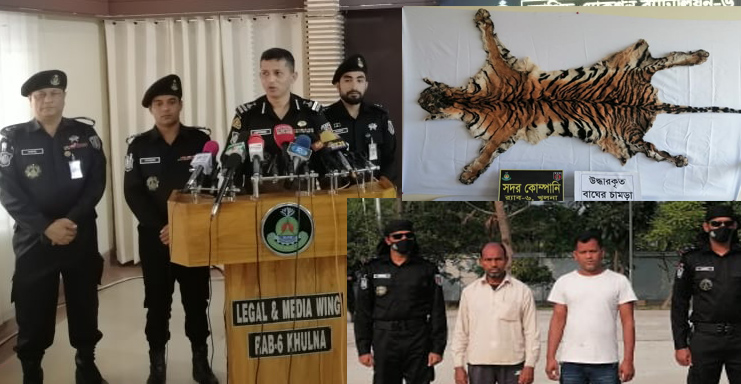 এরই ধারাবাহিকতায় ১১ ডিসেম্বর র্যাব-৬ (সদর কোম্পানী), খুলনার একটি আভিযানিক দল গোয়েন্দা তথ্যের মাধ্যমে জানতে পারে যে, বাগেরহাট জেলার ফকিরহাট থানাধীন কাটাখালী বাজার এলাকায় সুন্দরবনের ঐতিহ্য বাঘ (রয়েল বেঙ্গল টাইগার)’র চামড়া ক্রয়-বিক্রয় হচ্ছে। আভিযানিক দলটি উক্ত স্থানে অভিযান পরিচালনা করলে পালানোর চেষ্টাকালে ডুমুরিয়ার কাঞ্চনপুর এলাকার মৃত কোরেশ মাহমমুদের ছেলে মোঃ আজিজুর রহমান (৪৫) ও কেএমপি’র সোনাডাঙ্গা থানার গ্রামিন আবাসিক এলাকার গামা সড়কের মোঃ জামাল খানের ছেলে মোঃ সাইদ খান (৩৫)কে গ্রেফতার করা হয়। এসময় তাদের কাছ থেকে ১টি বাঘের চামড়া উদ্ধার করা হয়েছে। তাদেও বিরুদ্ধে বাগেরহাট জেলার ফকিরহাট থানায় মামলাসহ হস্তান্তর কার্যক্রম প্রক্রিয়াধীন রয়েছে।