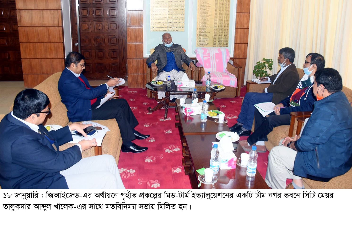জার্মান ডেভেলপমেন্ট কোঅপারেশনের (জিআইজেড) অর্থায়নে গৃহীত প্রকল্পের মিড-টার্ম ইভ্যালুয়েশনের একটি টীম আজ মঙ্গলবার সকালে নগর ভবনে সিটি মেয়র তালুকদার আব্দুল খালেক-এর সাথে মতবিনিময় সভায় মিলিত হন।