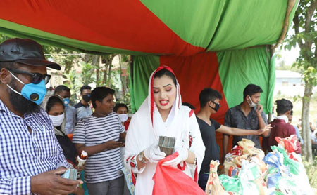 চিত্রনায়িকা বর্ষা সিরাজগঞ্জ জেলার শাহজাদপুরের মেয়ে। মহামারি করোনার এই দুর্দিনে এ নায়িকা ছুটে গেলেন নিজ এলাকায়। খাদ্যসামগ্রী নিয়ে দাঁড়ালেন ৫০০ পরিবারের পাশে। স্থানীয় পুলিশ প্রশাসনের সহায়তায় নিরাপদ দূরত্ব বজায় রেখে বর্ষা নিজে উপস্থিত থেকে তার এলাকায় অসচ্ছল মানুষদের নিত্য প্রয়োজনীয় খাদ্য ও নগদ অর্থ দান করেন। তবে বর্ষা শুধু যে করোনাভাইরাসের জন্য মানুষের পাশে থাকছেন তা না; জানালেন তিনি সেচ্ছায় প্রায়শই তার গ্রাম এবং আশেপাশের মানুষদের সাহায্য করেন। এ বিষয়ে বর্ষা বলেন, করোনার ওসিলায় এবার আসা প্রায় ৫০০ পরিবারকে যতটুক আমার সামর্থ্য ছিল আমি সহযোগিতা করেছি। সচরাচর দেখা যায় যে মানুষকে কিছু দিতে গেলে একজনের উপর আরেকজন পড়ে যাচ্ছে মারামারি করছে, একটা প্যাকেট এর জন্য, খাবারের জন্য গ-গোল করছে। কিন্তু এখানে খুব সুন্দর ব্যবস্থা ছিল। বর্ষা এ জন্য তার চাচা ও শাহজাদপুর থানার সকল পুলিশ সদস্যের প্রতি কৃতজ্ঞতা প্রকাশ করেন। তিনি আরো বলেন, সবাই ভাল থাকবেন আর অনুগ্রহ করে যার যতটুকু সামর্থ্য অসহায় মানুষদের পাশে দাঁড়ান। অ্যামাউন্ট কোন বিষয় নয়,যত টুকু যার সামর্থ তা নিয়েই মানুষের পাশে দাঁড়াতে হবে। আর করোনা মোকাবেলায়যে যে নিয়মের কথা বলা হচ্ছে তা সবাইকে মেনে চলার অনুরোধ রইলো। এই সমস্যা আসলে সবাইকে দূরে দূরে থেকেও এক সাথে কাজ করতে হবে। সবাই বাসায় থাকবেন প্লিজ, এ মহামারী থেকে বাঁচার এটাই সব থেকে বড় উপায়। আর বেশ বেশি দোয়া চাইতে হবে আল্লাহর কাছে।