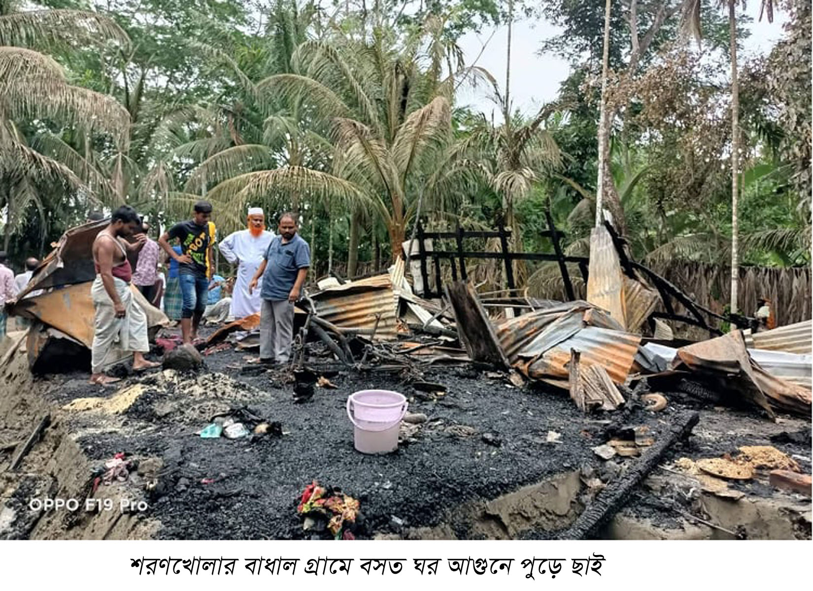 বাগেরহাটের শরণখোলা উপজেলার বাধাল গ্রামে একটি বসত ঘর আগুনে সম্পূর্ণ ভস্মিভূত হয়েছে। শুক্রবার রাত আড়াইটার দিকে এ অগ্নিকান্ডের ঘটনা ঘটে। আগুনে নগদ টাকা ও মালামালসহ প্রায় ১০ লাখ টাকার ক্ষয়ক্ষতি হয়।