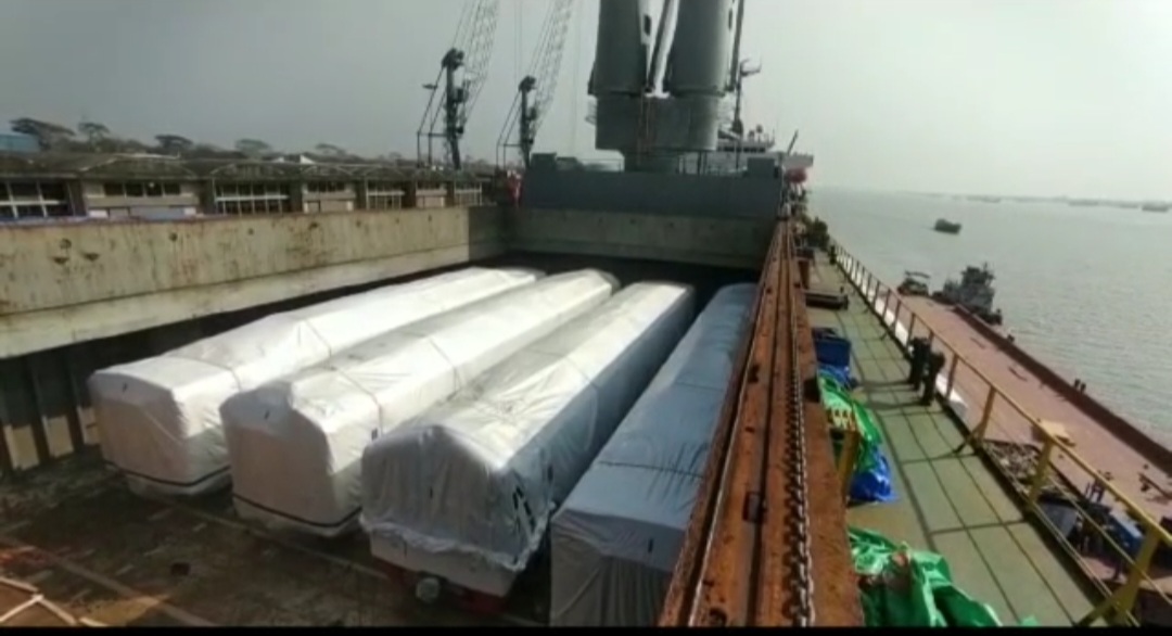 আর বৃহস্পতিবার ভোর ৬টা থেকে সাবধানে গুরুত্বপূর্ণ ভারী ও মুল্যবান কোচ এবং ইন্জিন নামানো হবে। এসব মালামাল নামিয়ে দিয়ে বিদেশী জাহাজটি বৃহস্পতিবার বিকেলেই এ বন্দর ত্যাগ করবে। জাহাজ থেকে সরাসরি বার্জে (নৌযান) নামানো এসব মালামাল নদী পথেই ঢাকার উত্তরার দিয়াবাড়ী ডিপোতে নেয়া হবে। তিনি বলেন, এ পর্যন্ত মোংলা বন্দর দিয়ে মেট্রোরেলের ৬২টি কোচ ও ৩০টি ইন্জিন এসেছে। আগামী আগস্টে আরো ১২টি কোচ-ইন্জিন আসবে বলেও জানান তিনি।